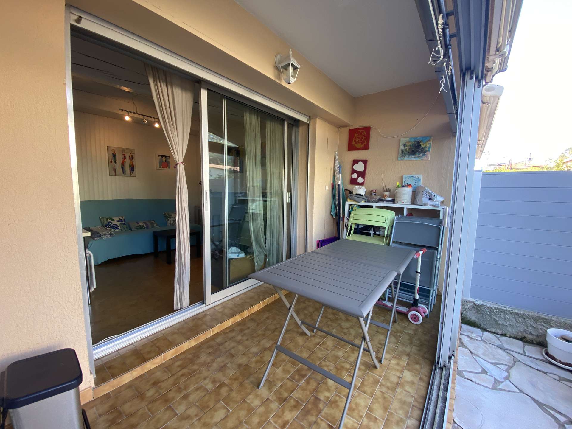 – Une loggia et terrasse en rez de jardin de 20m2 aménagée