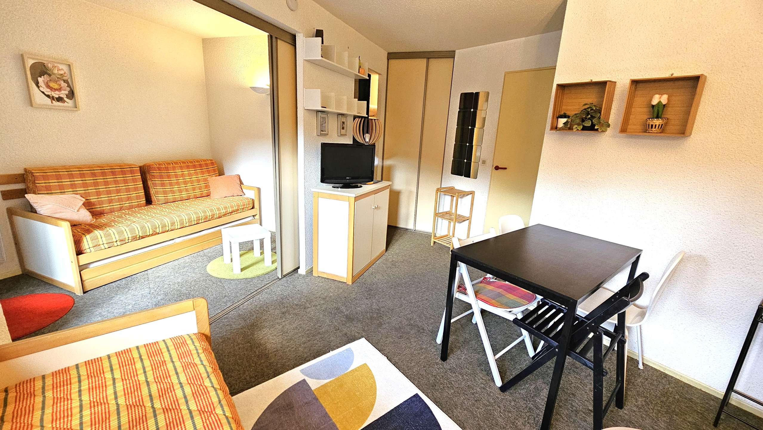 Séjour salle à manger avec canapé lit gigogne
