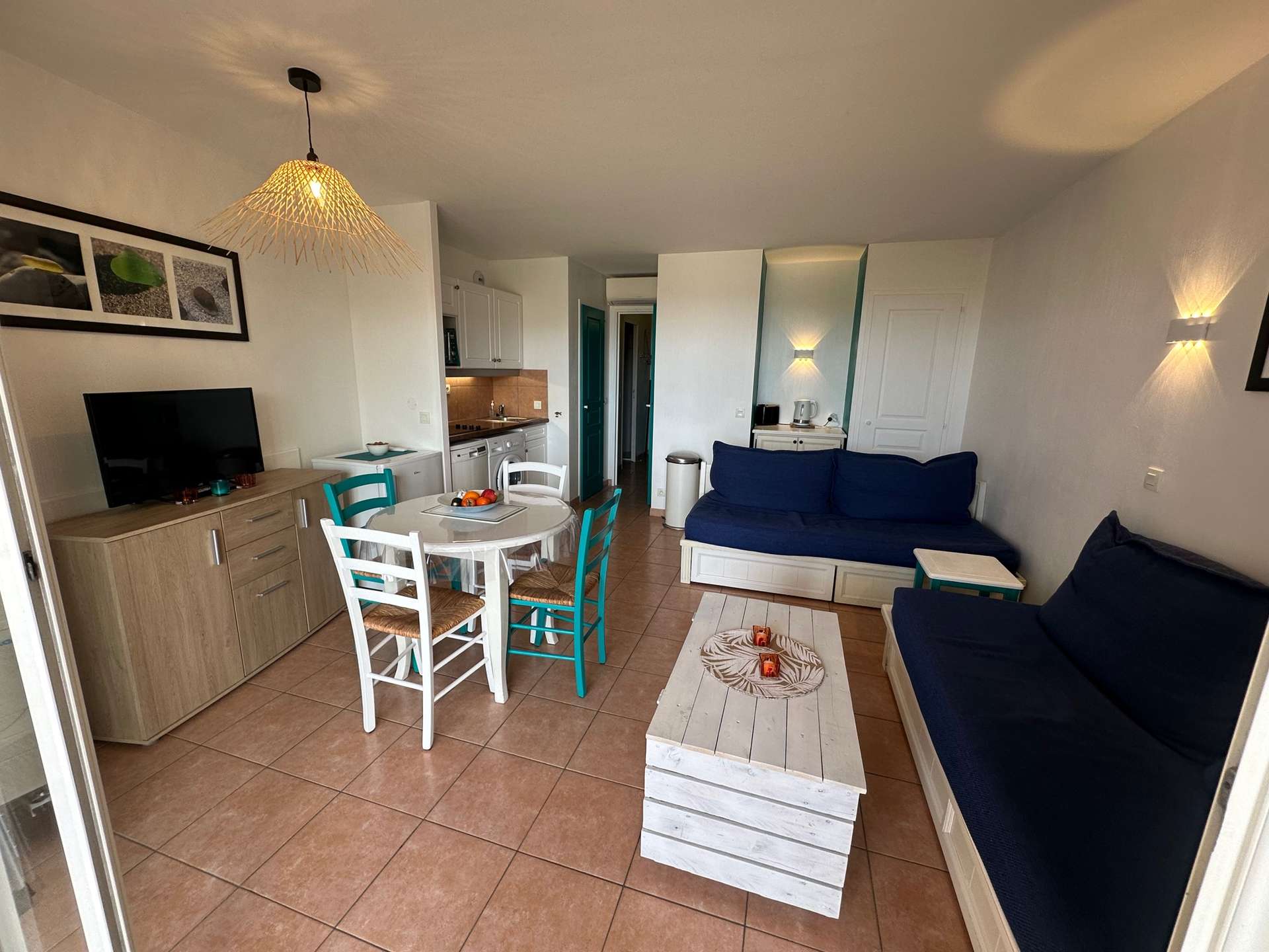 1 séjour salle à manger avec canapé convertible (2 lits simples)