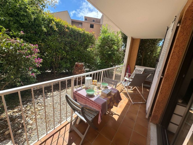 Nichée dans une résidence arborée, sécurisée, à seulement 100 mètres de la mer, cette location est idéale pour un séjour détente tout en profitant de toutes les commodités à pied.