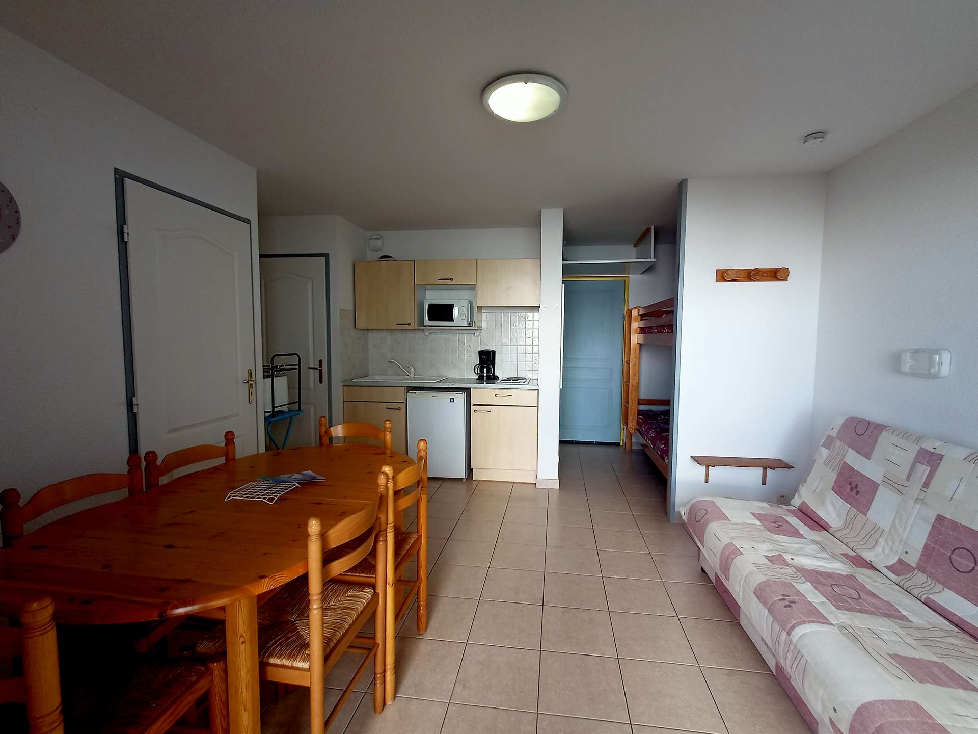 Ce T2 chaleureux peut accueillir jusqu’à 6 personnes et se compose de :