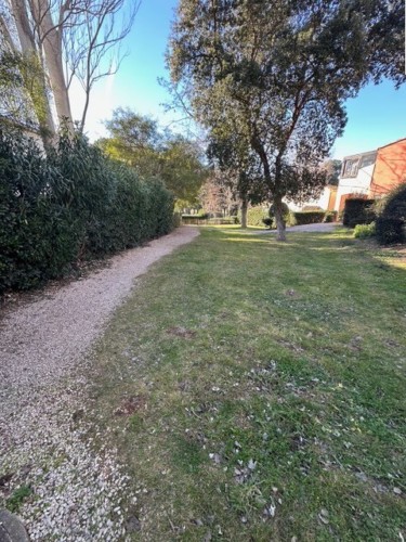 Un environnement verdoyant avec terrain de pétanque et garage à vélos.