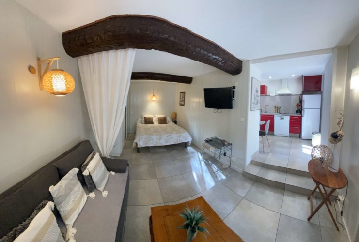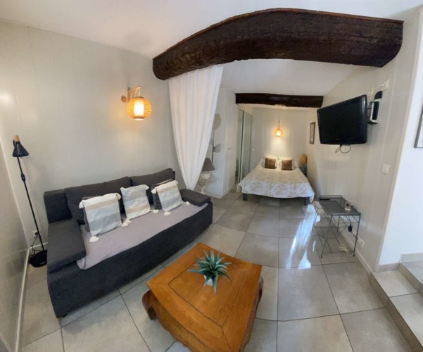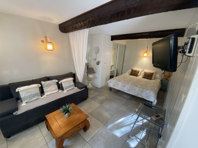 Rez de Villa à Bandol de type T1 bis de 30m2 entièrement équipé, comprenant :