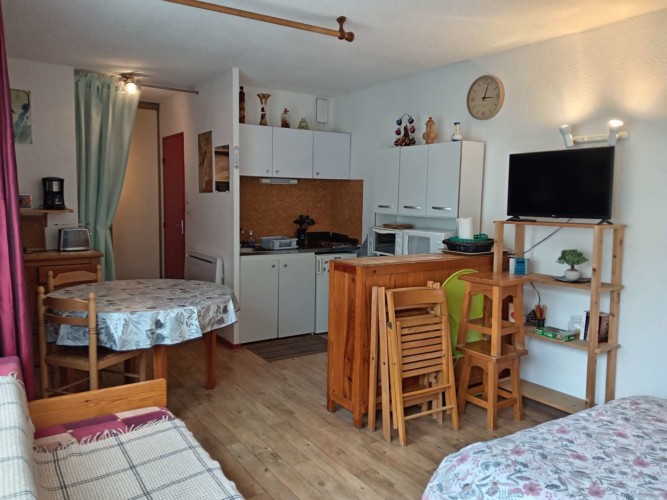 Studio résidence LES MARMOTTES accessible par 2 escaliers, 5 couchages, exposé Est avec vue montagne :
