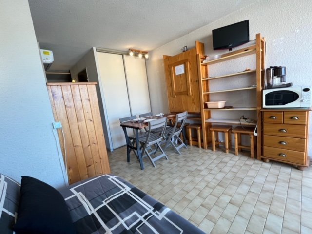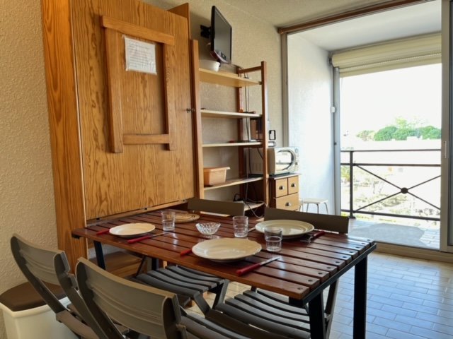 Nous vous proposons ce charmant studio de 25m² au 1er étage avec ascenseur d une jolie résidence. Il est composé d une pièce à vivre avec une cuisine ouverte equipée, de lits superposés simples et d une salle d eau. Il peut accueillir 4 couchages grace à sa banquette convertible. Vous bénéficierez d un accès internet wi-fi et d une télévision. Sa situation vous permettra de profiter de toutes les commodités sans prendre votre voiture.