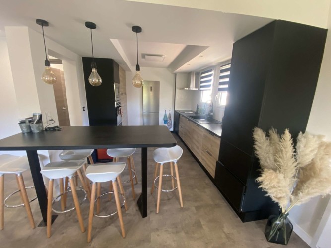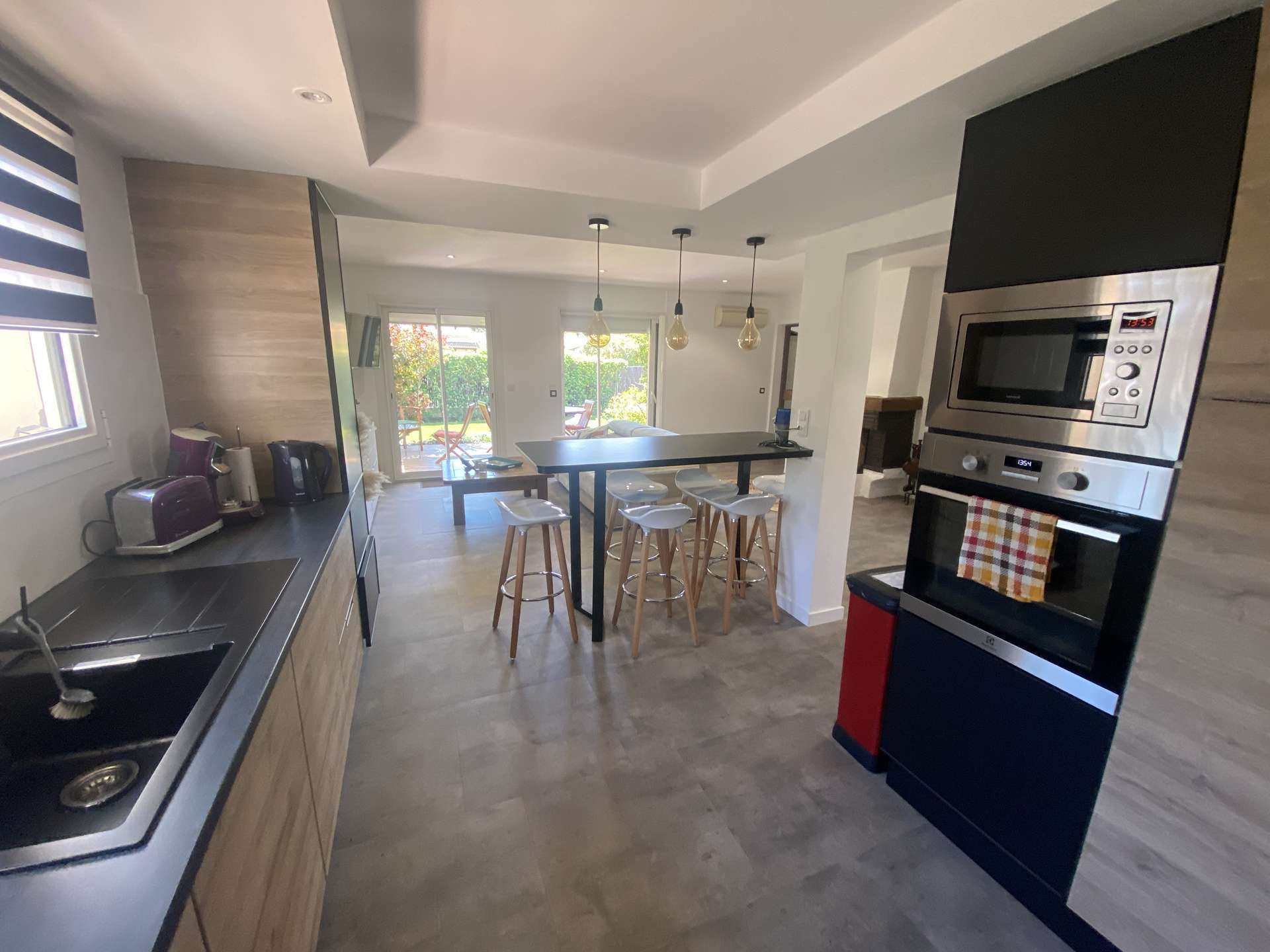 Cuisine ouverte entièrement équipée avec bar