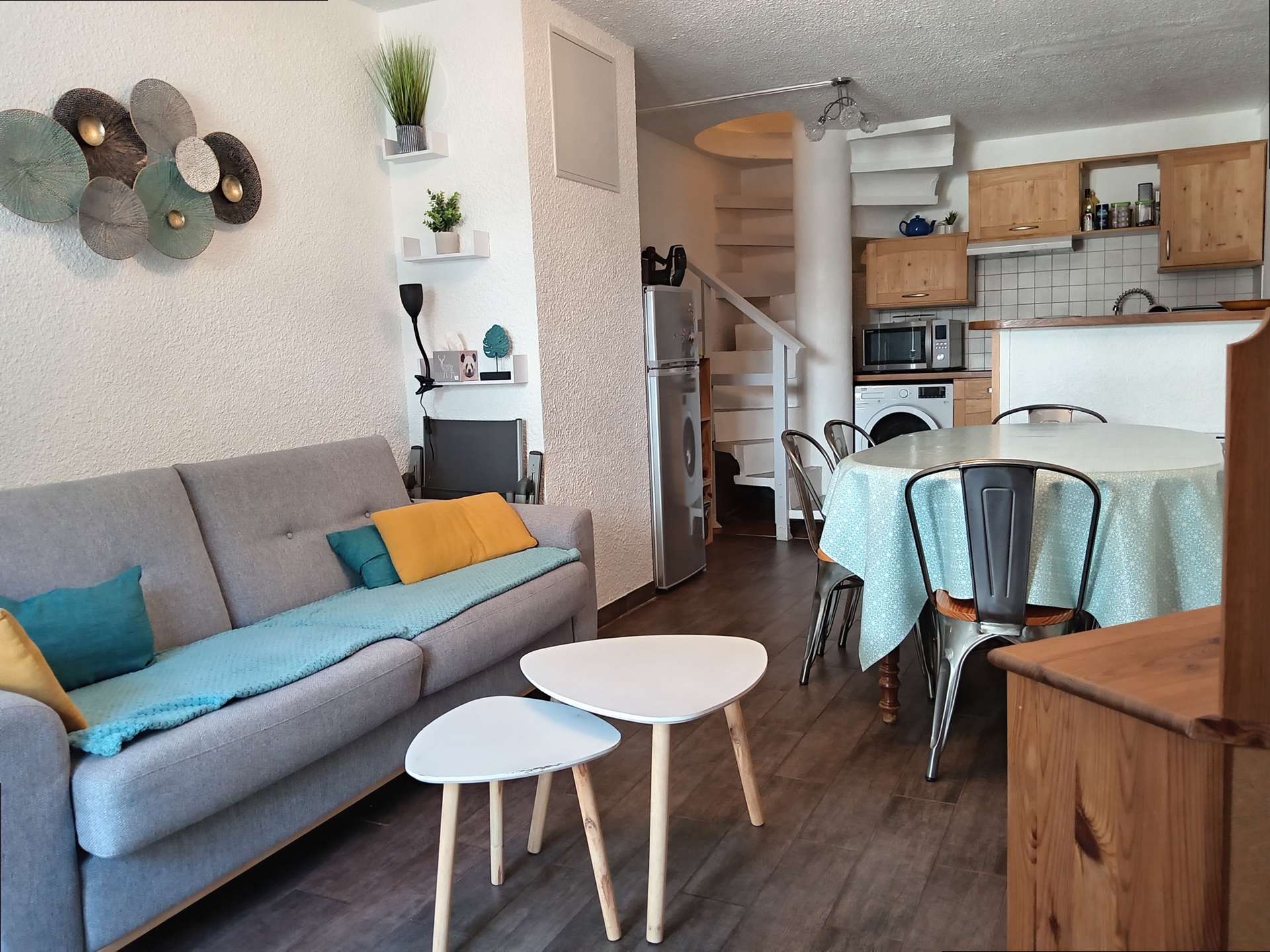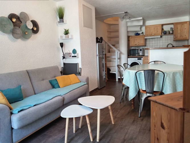Idéalement situé en rez-de-chaussée, cet appartement traversant de type T3 vous accueille dans un cadre chaleureux et fonctionnel, parfait pour vos vacances en famille ou entre amis. Il se compose de :