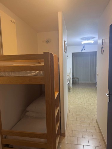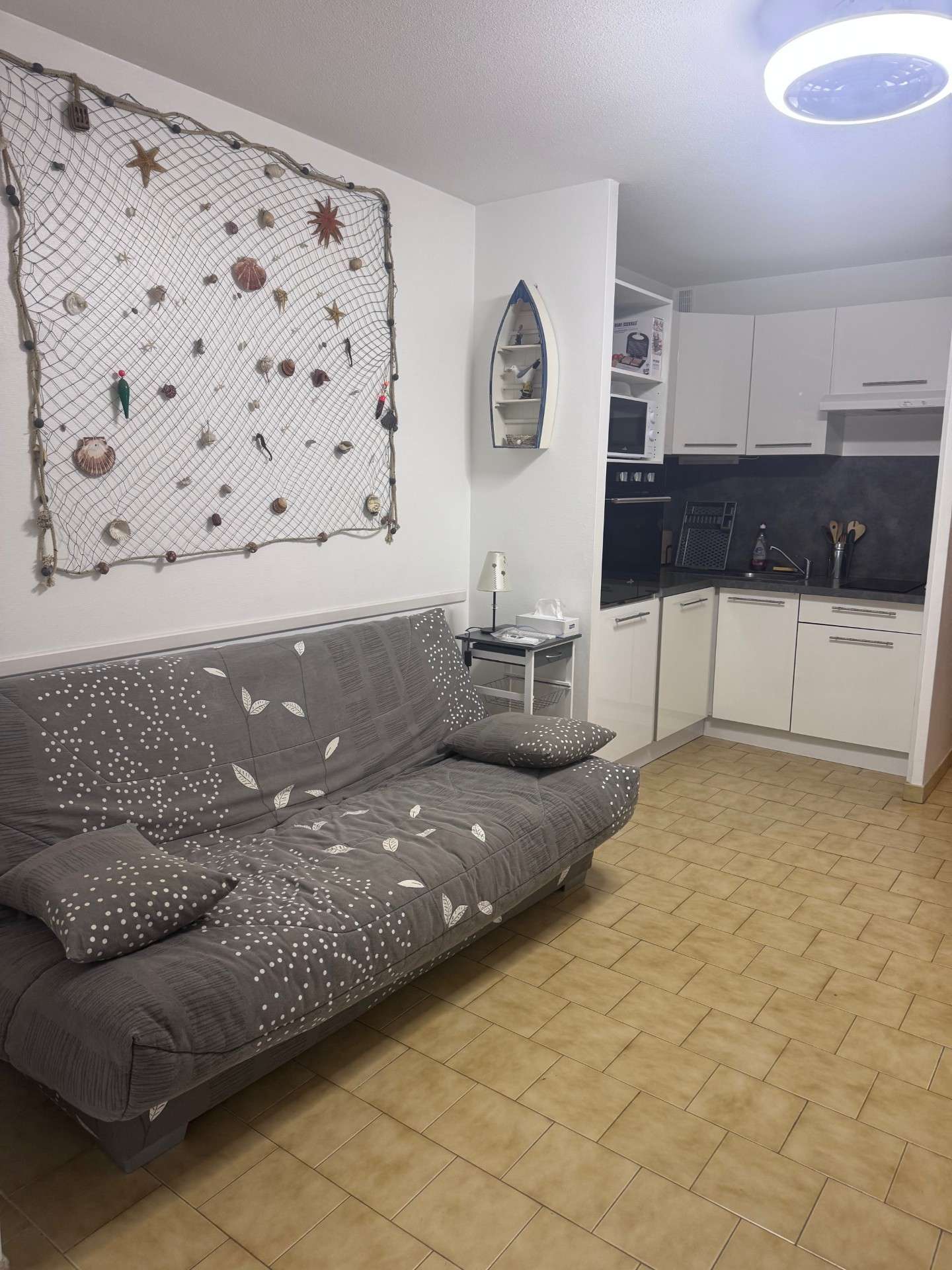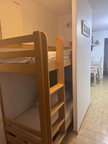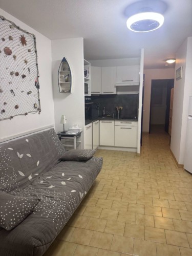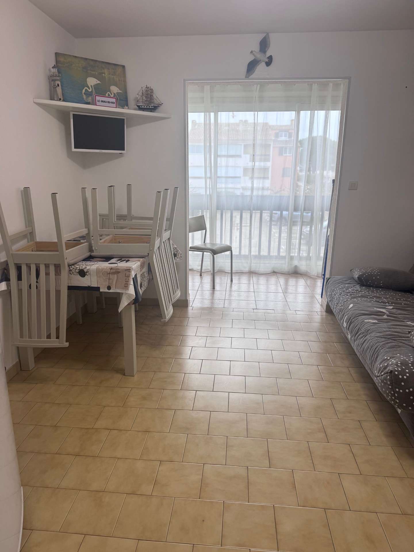 Situé au cœur de la résidence Camargue Village, ce grand T2 de 30m2 vous comblera par sa fonctionnalité. A 100 mètres de la plage et proche du centre ville, il vous permettra de profiter de toutes les commodités sans avoir à prendre votre voiture. Il est composé d’une pièce à vivre avec une cuisine américaine, une chambre avec 1 lit double , une cabine avec 2 lits superposés , une salle d eau. Avec son canapé convertible , il peut accueillir 5 couchages.C’est un réel plaisir de séjourner dans ce logement qui vous comblera très certainement. Vous bénéficiez également d une place de parking privative.