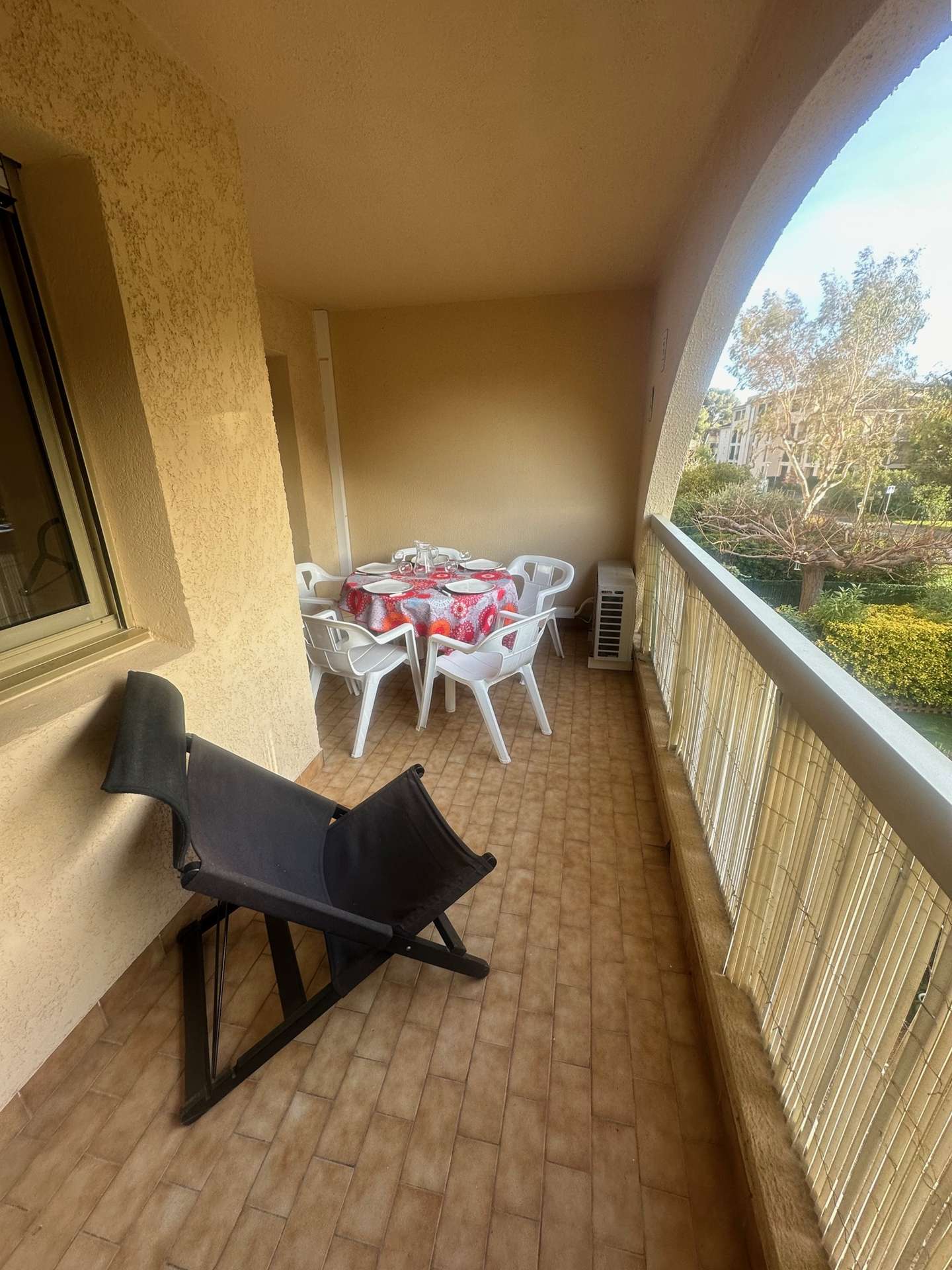Situé dans une résidence arborée, avec piscine et tennis (en supplément), cet appartement climatisé vous séduira pour son confort, prestations et situation idoine aussi attrayante que reposante proposant :